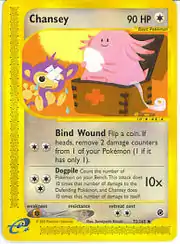 Chansey (Japanese: ラッキー Lucky) is a Colorless-type Basic Pokémon card. It was first released as part of the Sample Set, later released in the English Expedition Base Set.