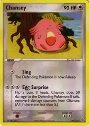 Chansey (Japanese: ラッキー Lucky) is a Colorless-type Basic Pokémon card. It is part of the EX FireRed & LeafGreen expansion.