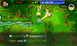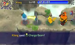 In Explorers of Time and Darkness and Sky, Charge Beam is a move with 9 base power, 12PP and 88% accuracy. The user targets enemy in front, cutting corners, possibly raising its own Special Attack by one stage.
