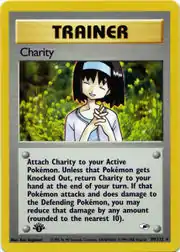 Charity (Japanese: お上品攻撃 Nice Attack) is a Trainer card. It is part of the Gym Heroes expansion.