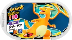 Charizard (Japanese: リザードン Lizardon) is a Grade 5 Pokémon Mezastar tag. It is part of the fourth set.