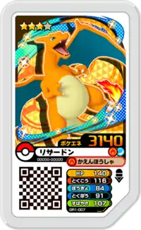 Charizard (Japanese: リザードン Lizardon) is a Grade 3 Pokémon Ga-Olé disk. It is part of the first Grand Rush set.