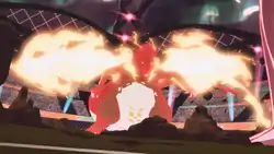 In The Redemption, Calem's Charizard celebrated its Trainer's crowning as Champion alongside Calem's Chesnaught.