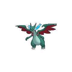 Charizard has two Mega Forms. Both feature a shorter snout, white, vertical slit pupils, and a bright underside reaching the lower jaw.