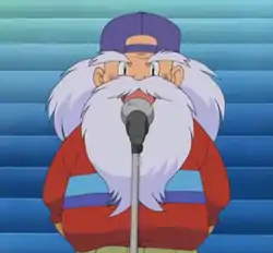 As the President of the Pokémon League Torch Committee, he observes the ceremonial relaying of the torch to ensure that the flame will safely arrive at the stadium. He is also seen during the opening ceremonies of many League Conferences, shouting words of encouragement to the participating Trainers, as well as during the closing ceremonies, awarding the winning Trainer with the championship trophy.