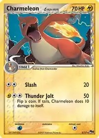 Charmeleon δ (Japanese: リザードδ Lizardo δ) is a Lightning-type Stage 1 Pokémon card. It was first released as part of the EX Crystal Guardians expansion.
