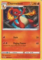 Slash is a move in the Pokémon games that Charmeleon can learn. Raging Flames is an attack that first appeared as Wild Blaze on Entei from Call of Legends. This card's Pokédex entry comes from Pokémon Sword.