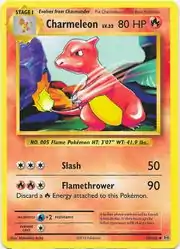 Charmeleon (Japanese: リザード Lizardo) is a Fire-type Stage 1 Pokémon card. It is part of the Evolutions expansion.