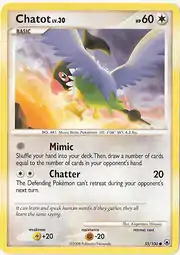 Mimic and Chatter are both moves in the Pokémon games that Chatot can learn. This card's Pokédex entry comes from Pokémon Diamond.