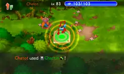 In Explorers of Time, Darkness and Sky, Chatter is a move with 10 base power, 12PP and 77.44% accuracy. The user attacks all adjacent enemies, possibly inflicting confusion on them. This move is affected by Muzzled status condition. Being a sound-based move, it is blocked by Soundproof.