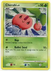 Cherubi (Japanese: チェリンボ Cherinbo) is a Grass-type Basic Pokémon card. It is part of the Stormfront expansion.