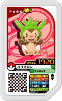 Chespin (Japanese: ハリマロン Harimaron) is a Grade 1 Pokémon Ga-Olé disk. It is part of the fifth Grand Rush set.