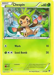 Chespin (Japanese: ハリマロン Harimaron) is a Grass-type Basic Pokémon card. It is part of the BREAKthrough expansion.