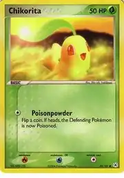 Chikorita (Japanese: チコリータ Chicorita) is a Grass-type Basic Pokémon card. It is part of the EX Hidden Legends expansion.