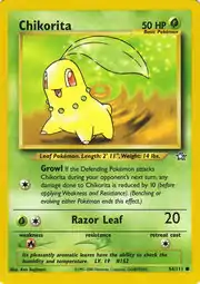 Chikorita (Japanese: チコリータ Chicorita) is a Grass-type Basic Pokémon card. It is part of the Neo Genesis expansion.
