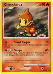 Chimchar (Japanese: ヒコザル Hikozaru) is a Fire-type Basic Pokémon card. It is part of POP Series 9.