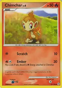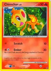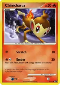 Chimchar (Japanese: ヒコザル Hikozaru) is a Fire-type Basic Pokémon card. It was first released as part of the Diamond & Pearl expansion.