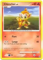 Chimchar (Japanese: ヒコザル Hikozaru) is a Fire-type Basic Pokémon card. It was first released as part of the Majestic Dawn expansion.