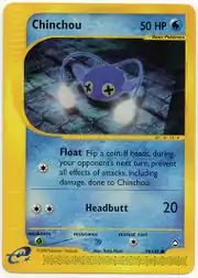 Chinchou (Japanese: チョンチー Chonchie) is a Water-type Basic Pokémon card. It is part of the Aquapolis expansion.