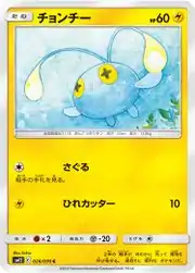 Chinchou (Japanese: チョンチー Chonchie) is a Lightning-type Basic Pokémon card. It is part of the Cosmic Eclipse expansion.