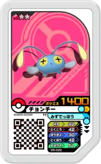Chinchou (Japanese: チョンチー Chonchie) is a Grade 1 Pokémon Ga-Olé disk. It is part of the fifth Dash set.