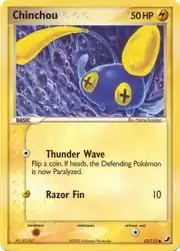 Chinchou (Japanese: チョンチー Chonchie) is a Lightning-type Basic Pokémon card. It is part of the EX Unseen Forces expansion.