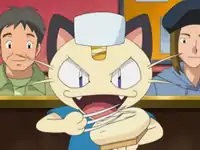 Upon seeing the expertise with which Meowth could cut noodles, Christopher offered Meowth a job in one of his ramen shops with a view to taking over the business eventually. Although Meowth reluctantly refused at first, after yet another blasting off courtesy of the twerps he decided to take Christopher up on the offer. Although Meowth's future looked bright, he quickly realized he couldn't just abandon his long-time team-mates. Upon hearing they were in trouble on Metagross Mountain he quickly quit the job and left to help his friends. | ||