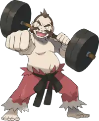 Chuck used Machoke against Ash's Bayleef in a Gym battle. With a powerful Submission attack, Machoke almost defeated Bayleef, but with Ash's support, Bayleef won the match. It reappeared in a flashback in Why? Wynaut!. Machoke's known moves are Karate Chop, Submission, and Cross Chop. | ||