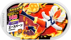 Cinderace (Japanese: エースバーン Aceburn) is a Grade 5 Pokémon Mezastar tag. It is part of the first set.