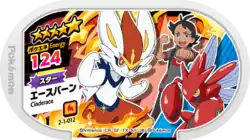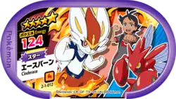 Cinderace (Japanese: エースバーン Aceburn) is a Grade 5 Pokémon Mezastar tag. It is part of the first Super Tag set.