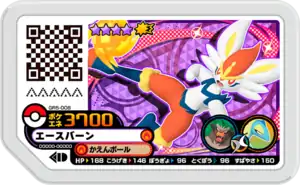 Cinderace (Japanese: エースバーン Aceburn) is a Grade 4 Pokémon Ga-Olé disk. It is part of the fifth Grand Rush set.