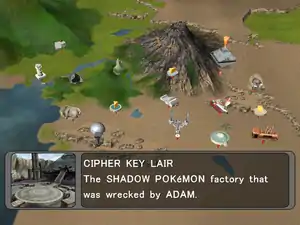 The Cipher Key Lair (Japanese: シャドーの秘密工場 Shadow Secret Factory) is a location in Pokémon XD.