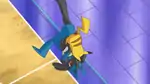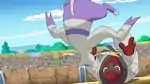 Lucario grabs its opponent, then turns on its back, throwing the opponent over its head with a kick. | ||