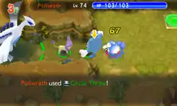 Circle Throw inflicts damage and has decreased priority. In a Trainer battle, it will switch out the target to the next Pokémon in line that has not fainted (if there is one). In a wild Pokémon battle with a single wild Pokémon, this move will cause the battle to end if the user's level is equal or greater than the target's; however, if there are multiple wild Pokémon in the battle, it works the same as in a Trainer battle.