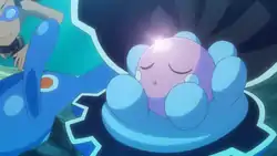 Clamperl debuted in Clamperl of Wisdom as a resident of Maisie Island. Spoink lost its pearl and took a blue pearl that was created by a Clamperl from Isaiah's lab, thus causing conflict with the Bivalve Pokémon. Team Rocket also wanted to get their hands on the blue pearl.