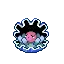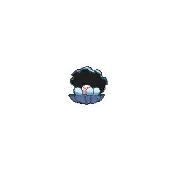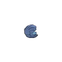 Clamperl is an aquatic Pokémon that makes its home on the seafloor. Its bivalve shell is dark blue with a silver rim along the inner edges. The shell is used to clamp down on prey, as well as for protection. A fully-grown shell will have nicks and scratches all over. Inside of the shell is a fragile, light blue body composed of six spherical extensions with a pink, pearl-like head in the center, usually depicted with its eyes closed. There is a circular white patch on each cheek.