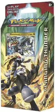 Kommo-o makes a mighty noise in battle! With a thunderous crew of Fighting and Lightning types, you can tear it up with huge hits and powerful Pokémon. The Clanging Thunder theme deck is going extra-big at full volume!