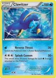 Clawitzer (Japanese: ブロスター Bloster) is a Water-type Stage 1 Pokémon card. It is part of the Furious Fists expansion.