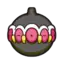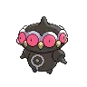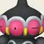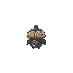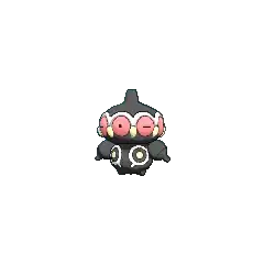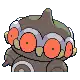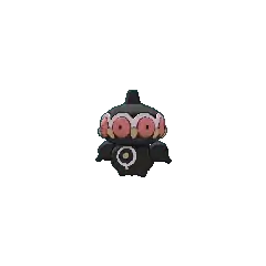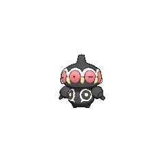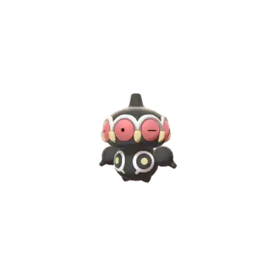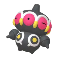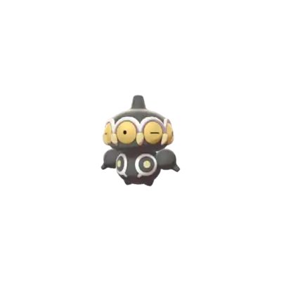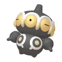 Claydol is a large, black Pokémon that resembles a mud statue with two stubby legs. It has a wide, spherical head with a rounded protrusion on top. Around its head are many large, pink eyes with yellow, beak-like protrusions between each. A wavy, white rim runs along the upper edges of the eyes. Its torso has white ring markings, each with a downward extension and yellow dot in the middle. It has spherical arms with a rounded protrusion that are capable of firing beams. These arms are not attached to its body but are usually kept floating close by Claydol's psychic powers. Claydol uses the same telekinetic abilities to move and float through the air. It lives in rough terrains.