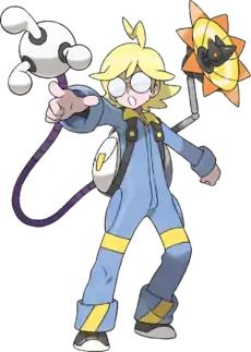 Clemont (Japanese: シトロン Citron) is an inventor who is the Gym Leader of Lumiose City's Gym, known officially as the Lumiose Gym. He specializes in Electric-type Pokémon. He gives the Voltage Badge to Trainers who defeat him.