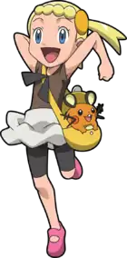 Clemont's Dedenne (Japanese: シトロンのデデンネ Citron's Dedenne) was the first Pokémon that Clemont caught during his journey through the Kalos region, and his fifth overall. He caught him at Bonnie's request so she can care for him, as she is not old enough yet to be a Pokémon Trainer.