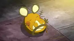 In A Diamond in the Rough!, Ash and the gang reunited with Goodra at the wetlands. Dedenne was shown to be very excited, as he was the first one to reach Goodra. Later, when Team Rocket trapped six Carbink in one of their cages used to capture Pokémon and was discussing over what to do with them, Dedenne, who was eavesdropping, attempted to free them. He first tried nibbling on the corners of the cage, and when that didn't work, he used Nuzzle in attempt to break the cage. Not only did that not work, but the ruckus also attracted the attention of Team Rocket. Team Rocket promptly sent out their Pokémon to chase Dedenne away. Dedenne ran right into Bonnie, who was looking for Dedenne, and upon seeing Team Rocket's Pokémon chasing Dedenne, she ran away and followed Dedenne back to the group. With this, Team Rocket began attacking the wetlands with their Carbink mecha. After defeating Team Rocket and retreating to relax in a cavern pool, Dedenne was shown happily diving off Goodra's head and into the water.