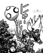 The Mister Dirt Analyzing Simulator (Japanese: 土壌分析シミュレーションくん! Soil Analysis Simulation-kun) analyzes the components of certain soil, simulates seeds being planted in this soil and visualizes the data gathered, all to determine whether plants can grow in a certain patch of land. It can also determine the size of a rock and check if there are water veins underneath the soil. It consists of a computer screen standing on a leg and is activated by pressing a button. It was used to check if the soil in a certain area of Route 19 was capable of growing plants, since a robot named Robon was trying to bring the area back to its former lush state. After the first test, the invention determined the soil was not viable, but after Robon removed a rock that was blocking a water vein, the invention declared the soil was now capable of growing plants. It was voiced by Emily Jenness in the English dub. | A Watershed Moment! | ✔ Success |