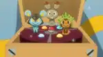 The Mini Music Box (Japanese: ミニバージョンのオルゴール Mini Version Music Box) is a music box that looks like a present box with a ribbon on top. The ribbon is actually a key, and can be removed. The key must be placed in a hole on the side and switched on. The box will then open, revealing a turning wheel with dolls resembling Bunnelby, Chespin, and Luxio on it. It is accompanied by a melody. Clemont began working on it after the group was told by Ramos about an annual festival held in Coumarine City, where participants give each other presents under the "Pledging Tree", the tree in which the Coumarine Gym is located. He wanted to create a present himself, so he spent the whole day working on the invention until the start of the festival at sunset. At the festival, he gave it to his Pokémon. | Under the Pledging Tree! | ✔ Success |