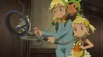 The Extra Strength Pry-It-Open (Japanese: スーパーパワーでこじあけ君 Break-Open-With-Super-Power-kun) is an invention that looks like a pincer on wheels. It can be used to open doors. When the pincer-like device is put between two doors, and the switch on the invention is pulled, it will break open the doors. Clemont used it when he, Ash, Bonnie and Serena were trapped inside a storage room in the Poké Ball Factory by Team Rocket. The invention managed to break the doors to the storage room, but while doing so, the invention exploded, destroying the doors as well in the process. | A Frenzied Factory Fiasco! | ➖ Imprecise |