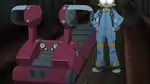 The Automatic Pikachu Retrieval Device (Japanese: 全自動ピカチュウ追跡マシン Fully Automated Pikachu Chasing Machine) can detect a Pikachu's unique energy pattern and track it down to even the farthest places. It comes with a pair of wheels so it can easily move around. Clemont used it to try to track down Ash's Pikachu, who had been taken away by Madame X. It got stuck in a fence however, causing it to explode and getting it partially destroyed. Clemont tried to repair it, but left it behind when the group continued their search for Pikachu on their own. When Ash found Pikachu and he started to attack him, the robot started to operate on its own and picked up signals again. It followed the signals into Madame X's hideout, but went out of control and bumped right into the Malamar used by Madame X. It exploded again and was destroyed for good, but it still unintentionally saved the day, as the Malamar lost its control over everyone it hypnotized. | A Conspiracy to Conquer! | ➖ Imprecise |