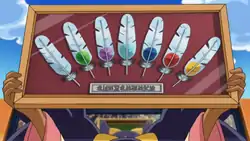 In Reunion Battles In Nimbasa!, a Clever Feather was included in the full set of feathers promised as a prize for winning the Club Battle tournament. The set was eventually won by Iris, who later sent it to the Village of Dragons.
