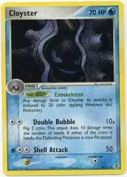 Cloyster (Japanese: パルシェン Parshen) is a Water-type Stage 1 Pokémon card. It was first released as part of the EX FireRed & LeafGreen expansion.