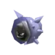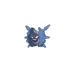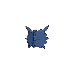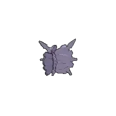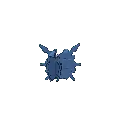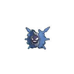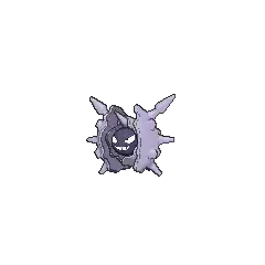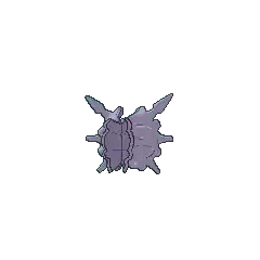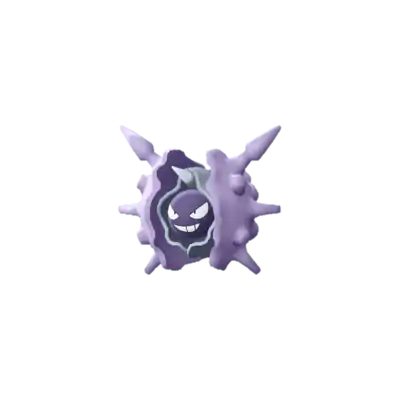 Cloyster is a black, pearl-like Pokémon. It is encased inside a light-gray shell, which is surrounded by a second jagged, blue-violet outer shell casing. It has one barb-like spike protruding from above its head, and multiple conical horns on its outer shell. Its shell is harder than a diamond with spikes that are even harder; harsh tidal currents will affect the size and sharpness of these spikes. On its pearl-like face, it has two white eyes and a mouth. Aside from its face and head, its internal anatomy has never been seen. Once it has shut itself in, it is impossible to open its shell from the outside. This impressive defense allows it to withstand anything from a bomb blast to even a missile strike.