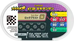 Coalossal (Japanese: セキタンザン Sekitanzan) is a Grade 5 Pokémon Mezastar tag. It is part of the third set.